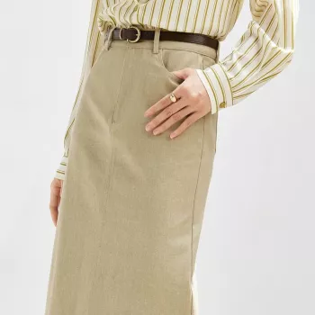 Classic Cotton Denim Skirt for Women - Elegant Mid-Calf Long Skirt