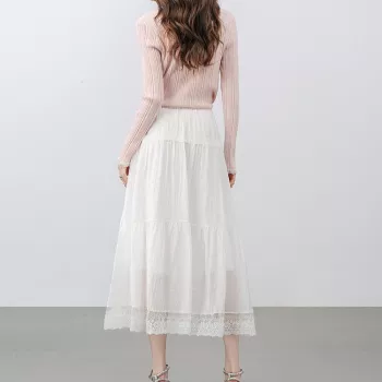 White A-Line Midi Skirt with Lace Details for Women – Perfect for Spring & Summer