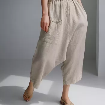 Women's Linen Cotton Wide-Leg Casual Pants with Pockets